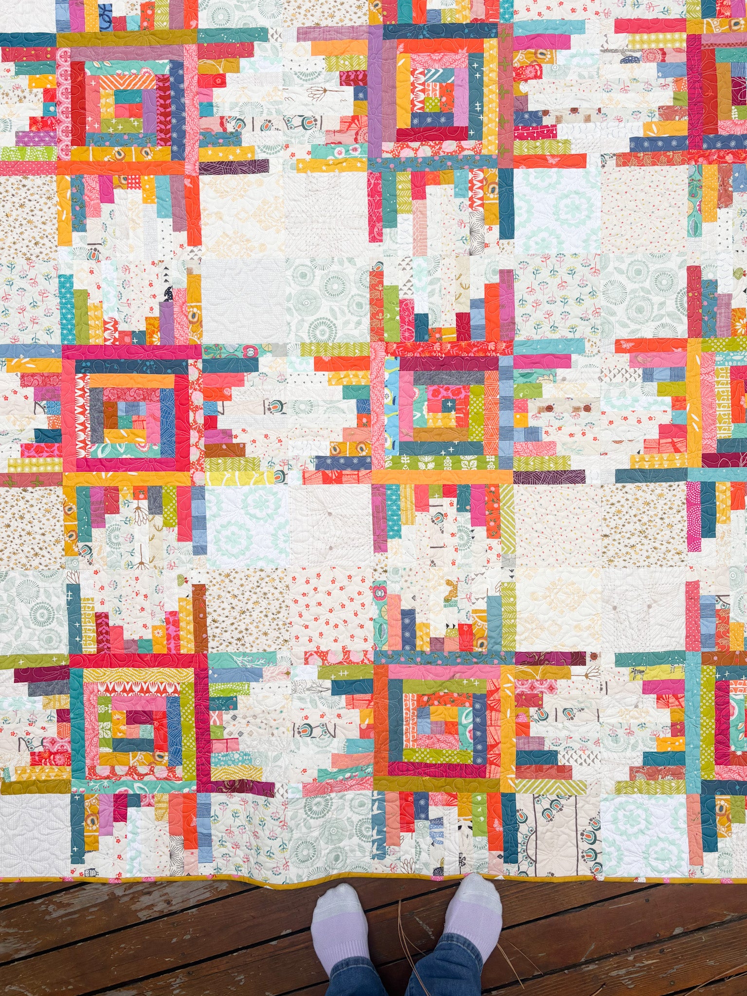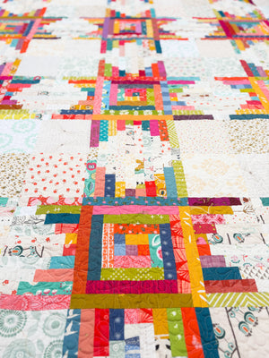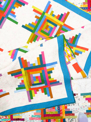 Adelaide's Cabin features the traditional log cabin quilt block with a modern twist. Use your scraps, fat quarters or 1/2 yards to turn the log cabin block into a modern star!