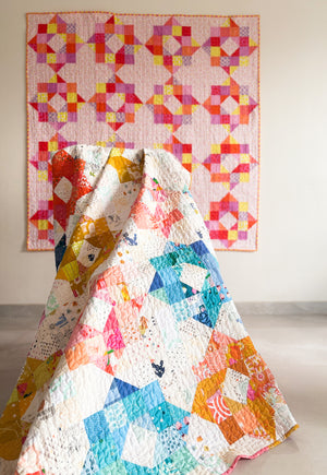 Patchwork Jubilee is a versatile pattern. Use scraps for the background, accent fabrics or the whole quilt. Or you can use fat quarters and yardage for a more modern, organized look.