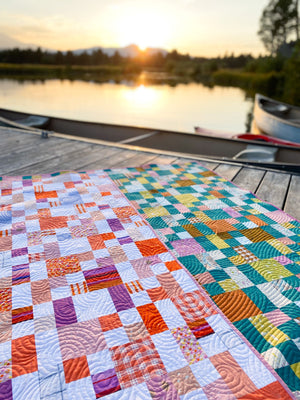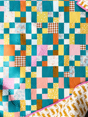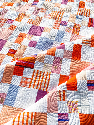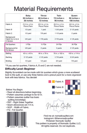 Slightly Scrambled is a fun, modern quilt pattern for the beginner quilter. This quilt can be scrappy or more organized depending on which version you make. Use precuts, fat quarters, yardage or scraps.