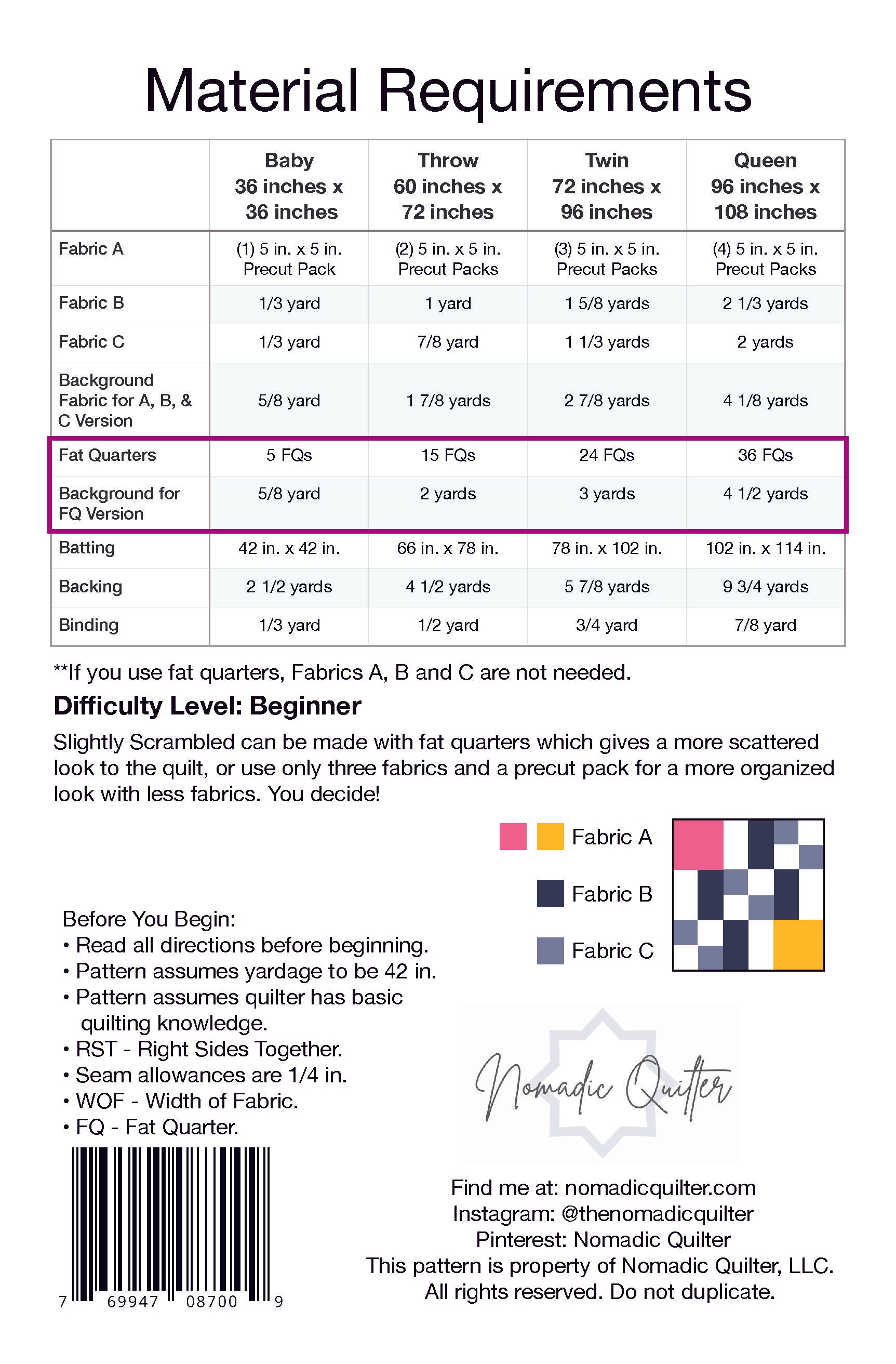 - Scrap, fat quarter and precut friendly!